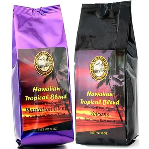 - 8 oz (whole bean) each of our Plantation Blend and our Volcano selections in our Hawaiian Tropical Blends Coffee Collection.
